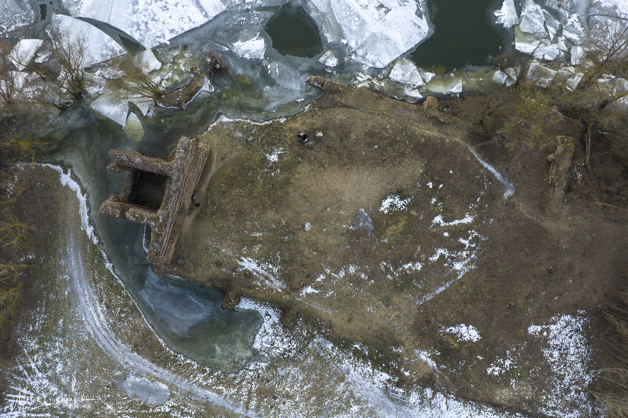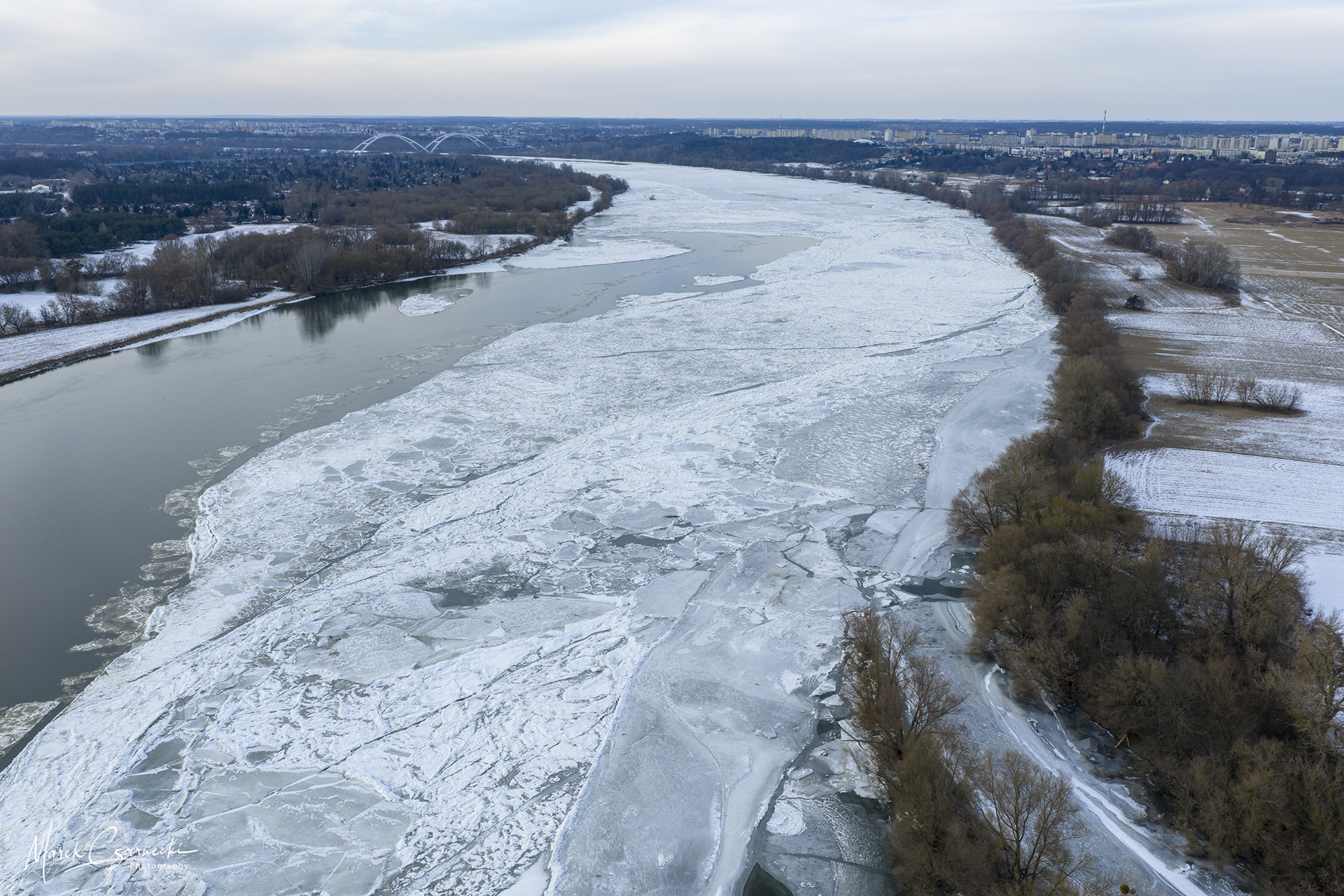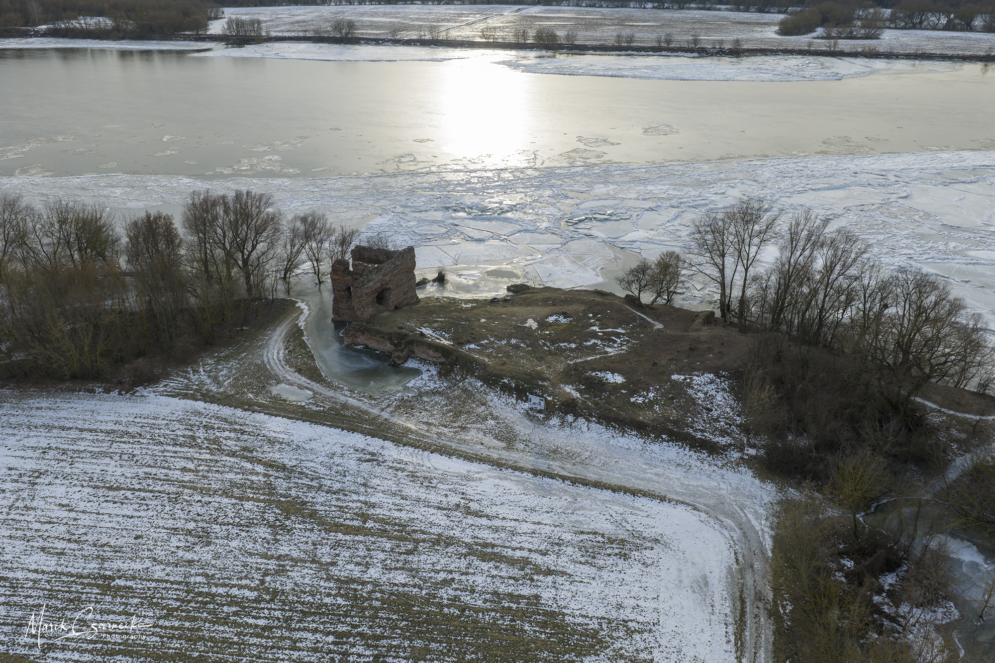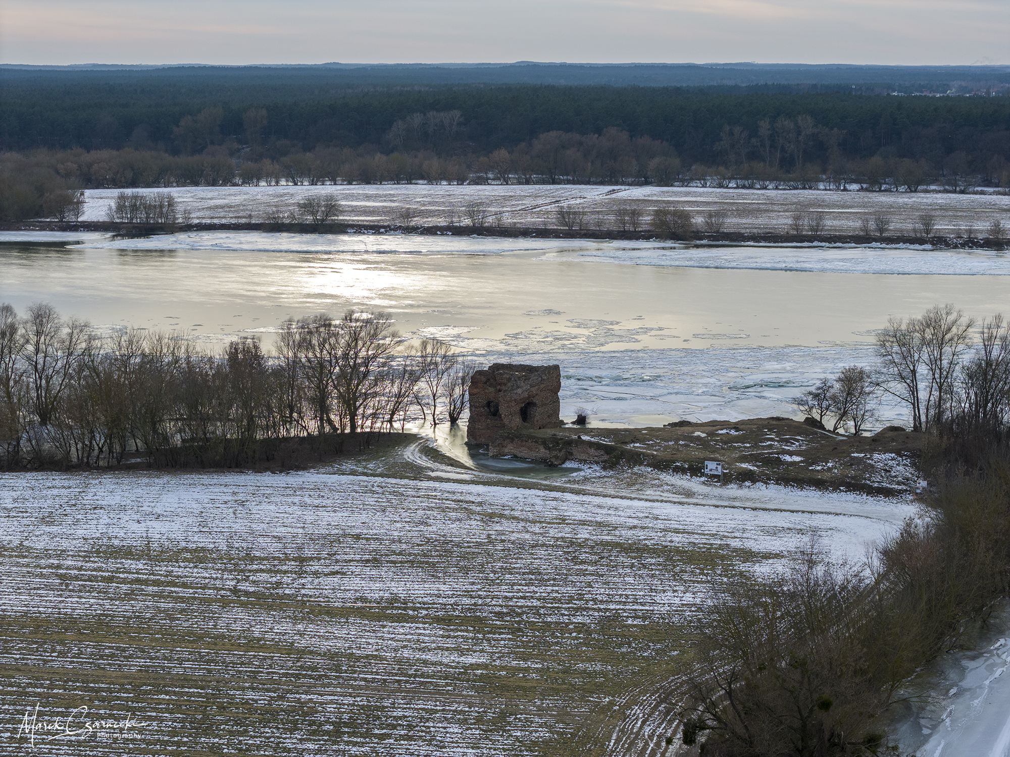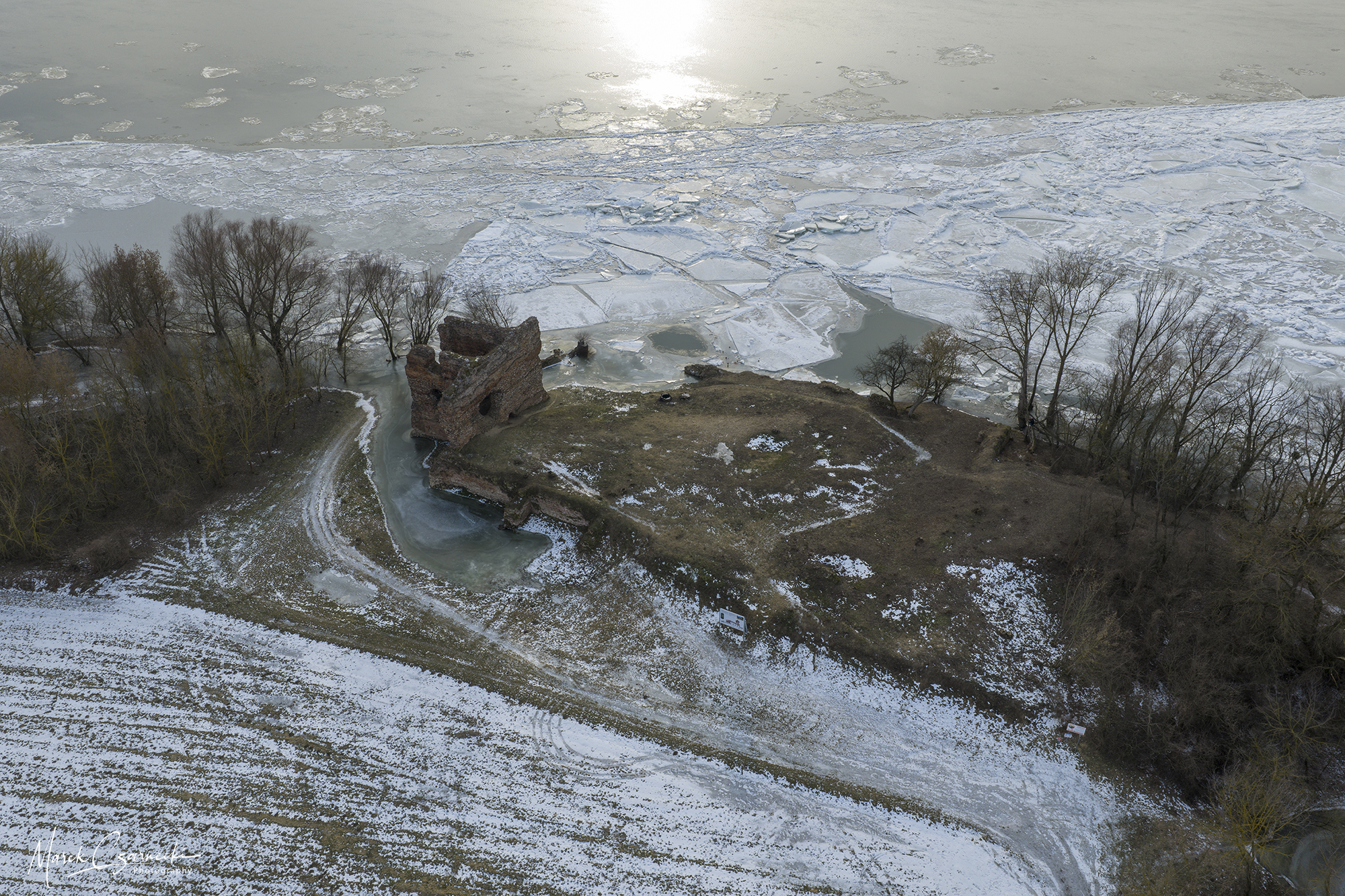 Szczególne miejsce w tym zbiorze zajmują ujęcia wykonane w dniach największych mrozów – kiedy Drwęca, skuta lodem, nieruchomieje, tworząc niezwykłe, geometryczne tekstury, które można dostrzec jedynie z drona.