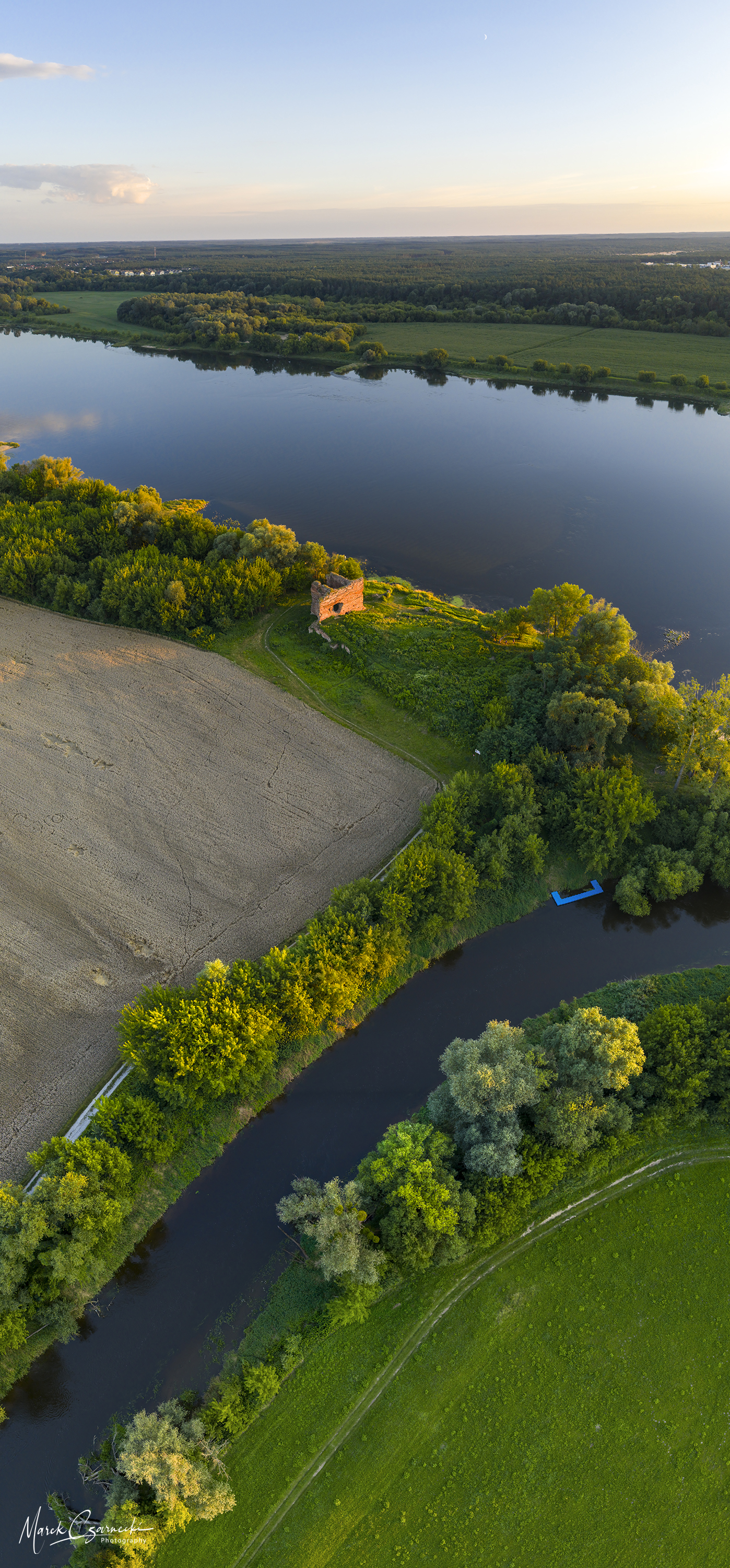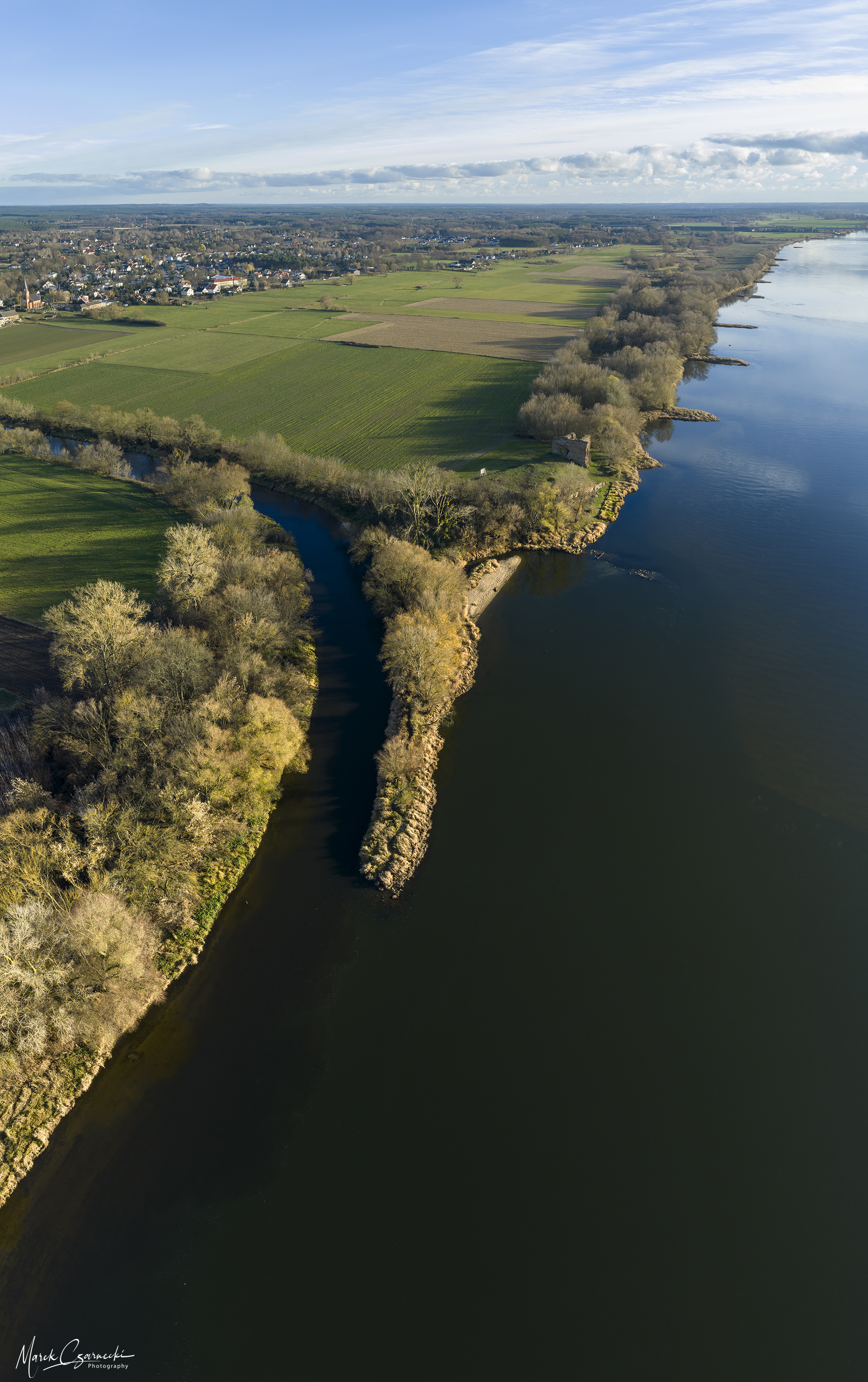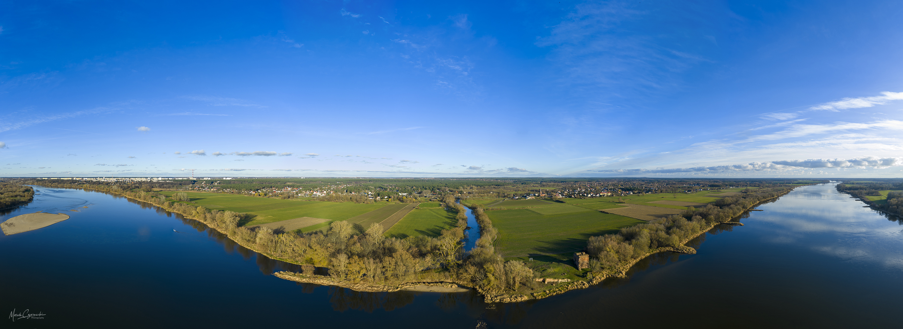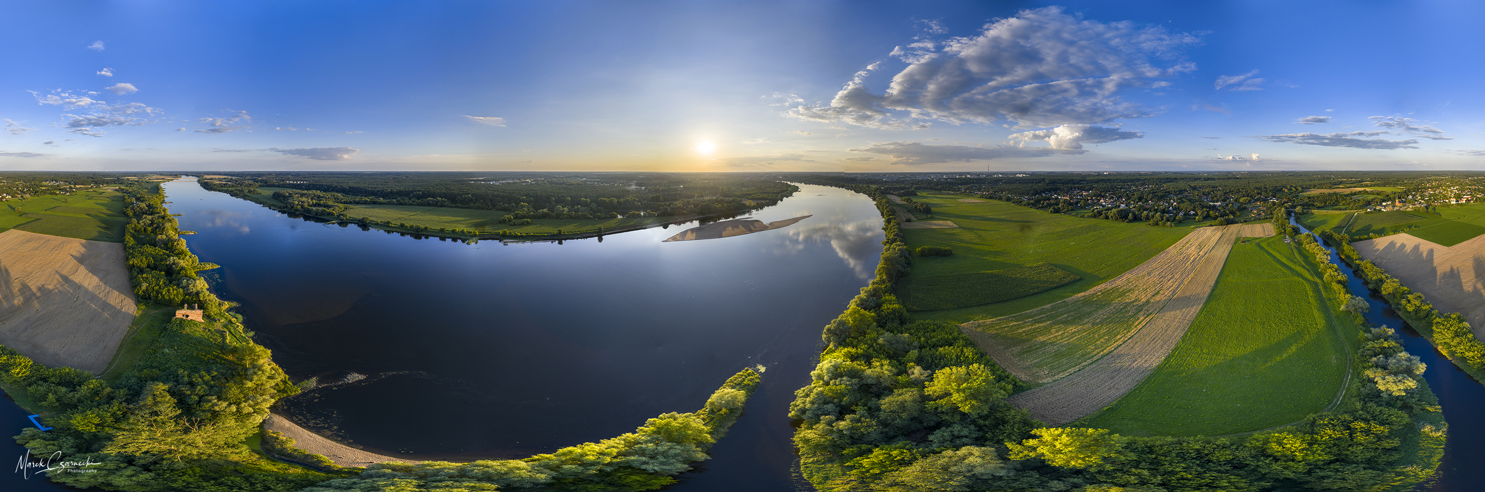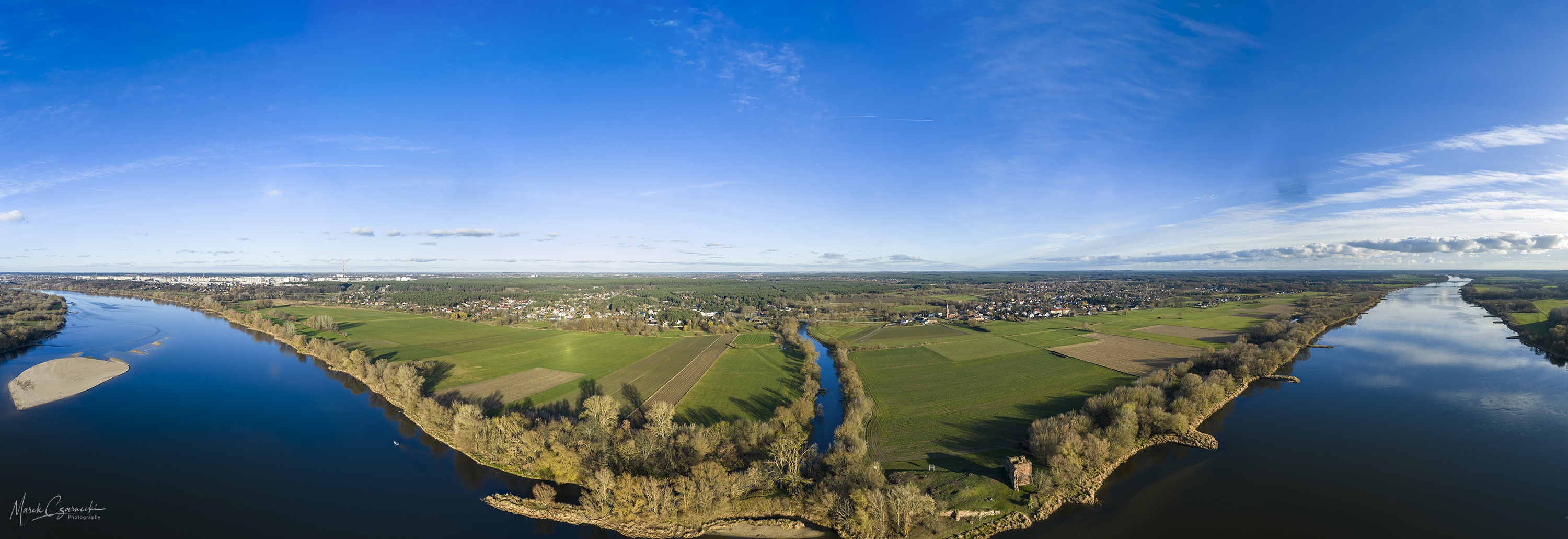Ta nowa przestrzeń na mojej stronie jest fotograficznym zapisem mojej fascynacji unikatowym miejscem, w którym nurt Drwęcy spotyka się z Wisłą. Wykorzystując perspektywę z drona, staram się uchwycić ten krajobraz w sposób wielowymiarowy – od klasycznych panoram poziomych, przez dynamiczne ujęcia wertykalne, aż po surrealistyczne „małe planety”, które zamykają ten nadwiślański świat w widowiskowej, sferycznej formie.