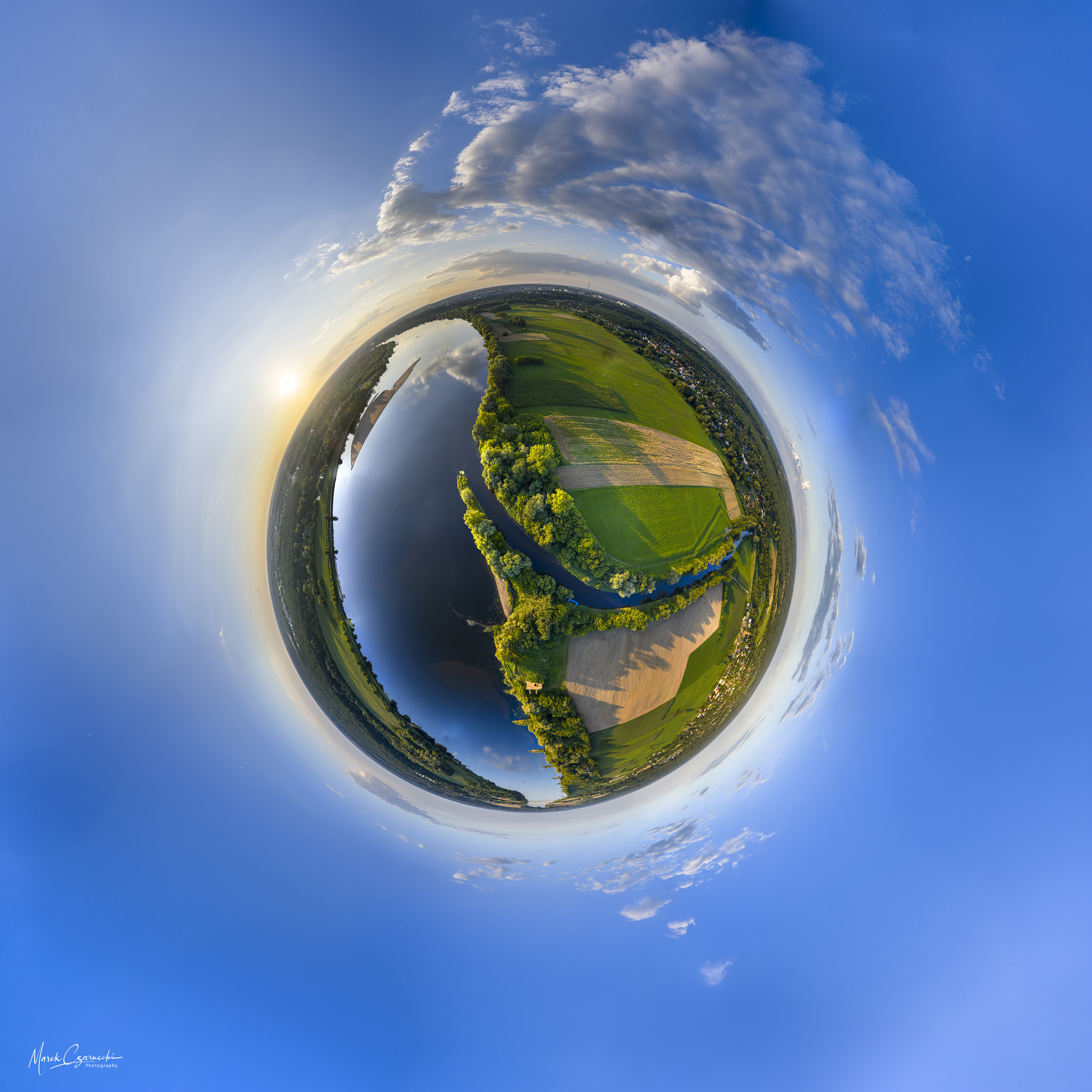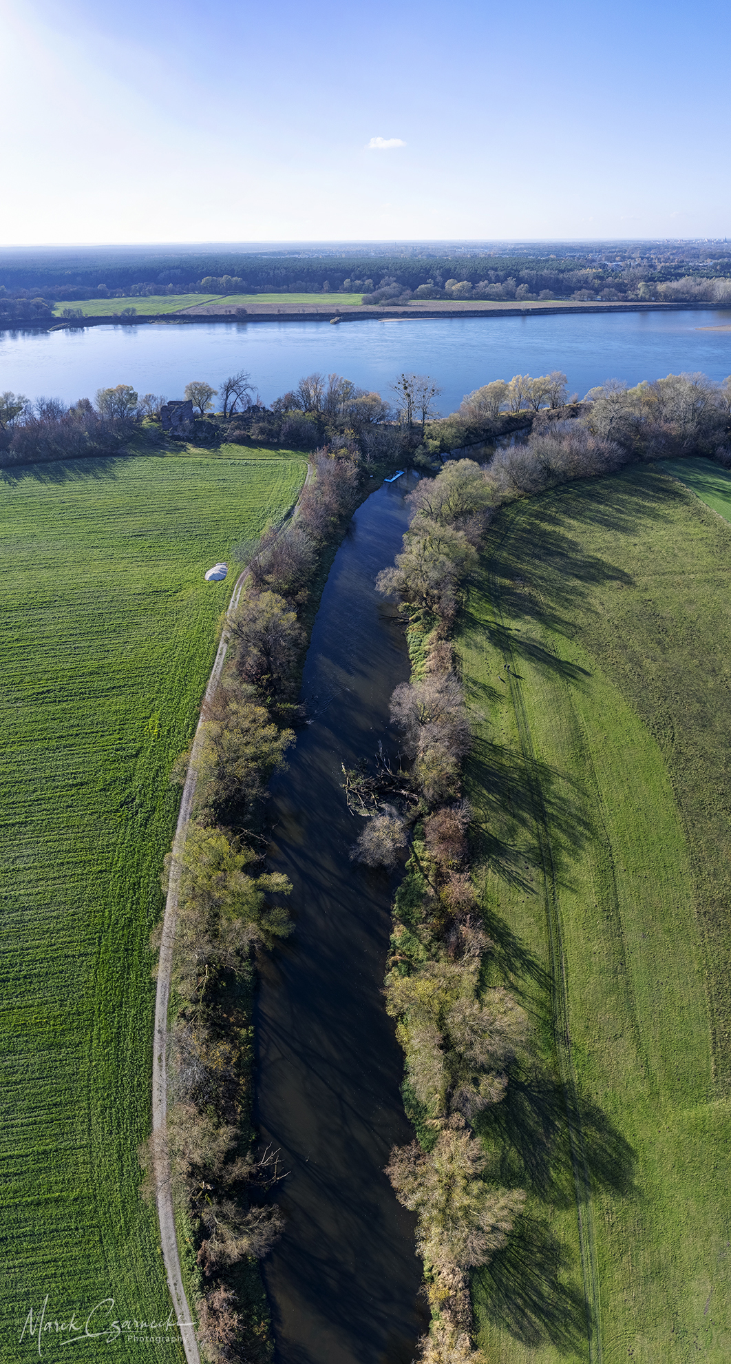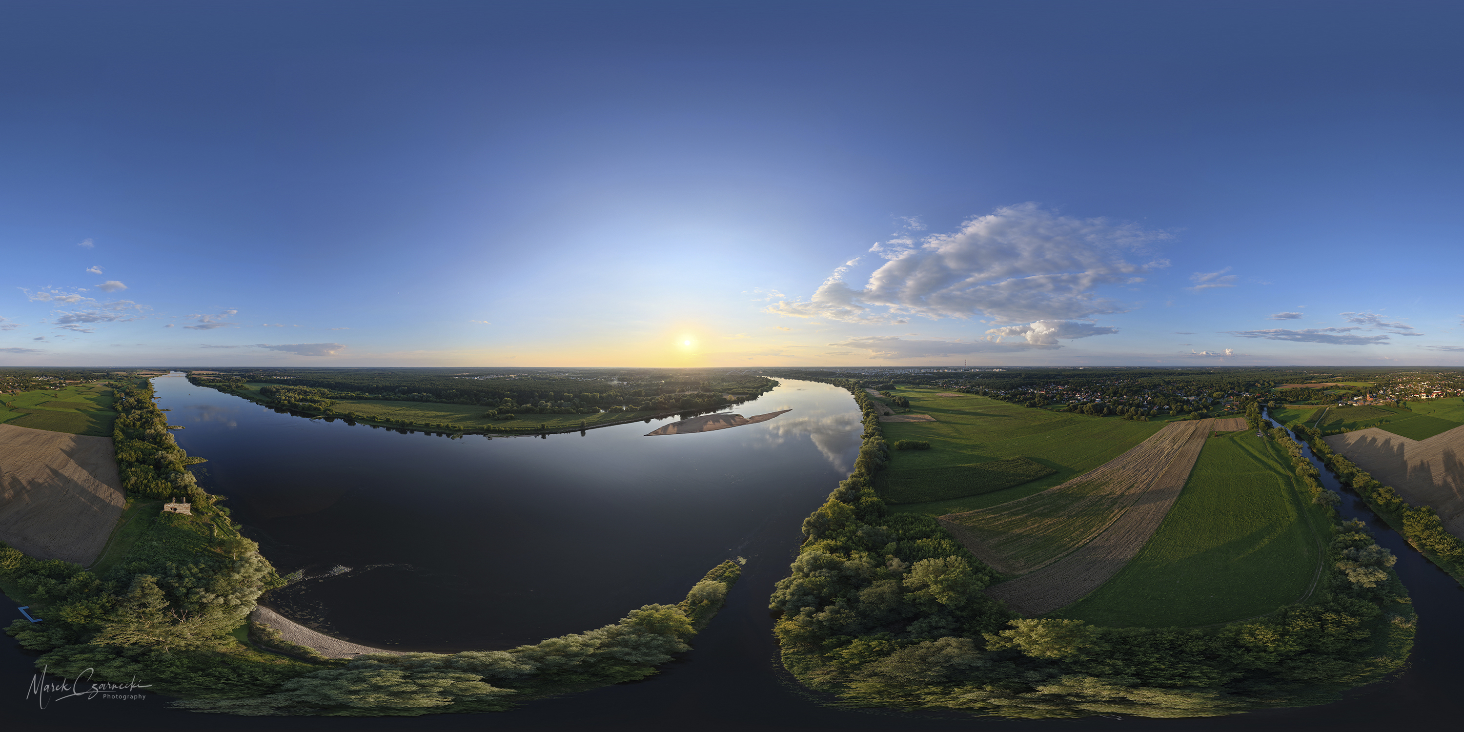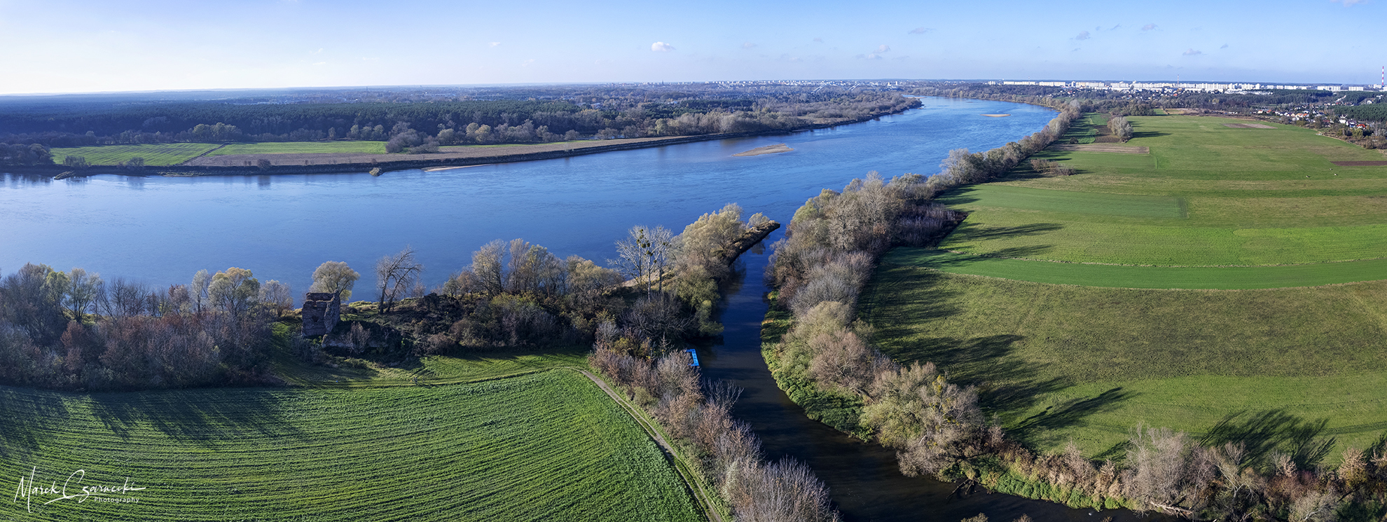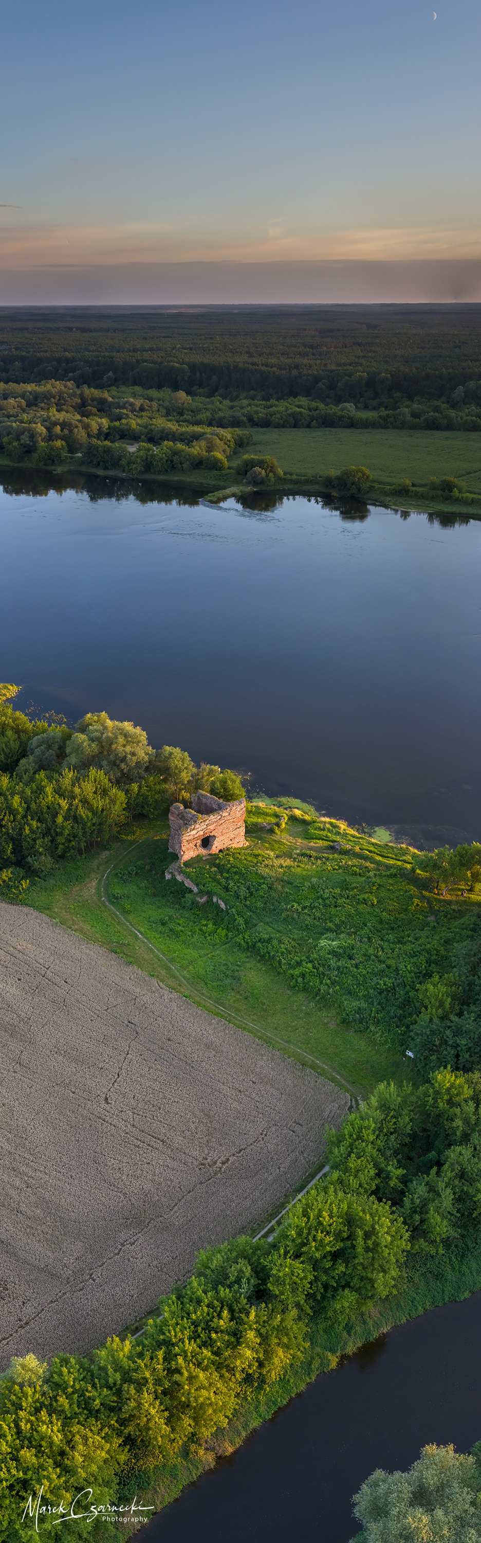 Ta nowa przestrzeń na mojej stronie jest fotograficznym zapisem mojej fascynacji unikatowym miejscem, w którym nurt Drwęcy spotyka się z Wisłą. Wykorzystując perspektywę z drona, staram się uchwycić ten krajobraz w sposób wielowymiarowy – od klasycznych panoram poziomych, przez dynamiczne ujęcia wertykalne, aż po surrealistyczne „małe planety”, które zamykają ten nadwiślański świat w widowiskowej, sferycznej formie.