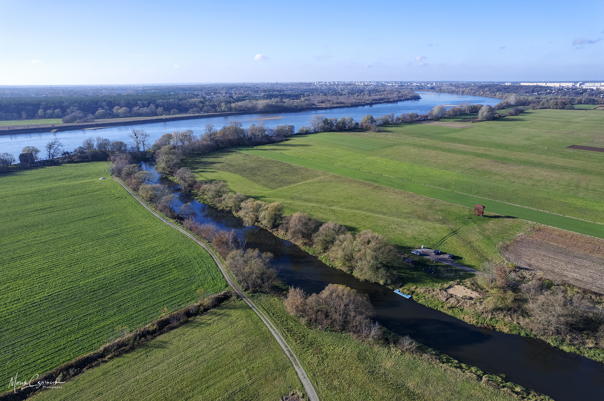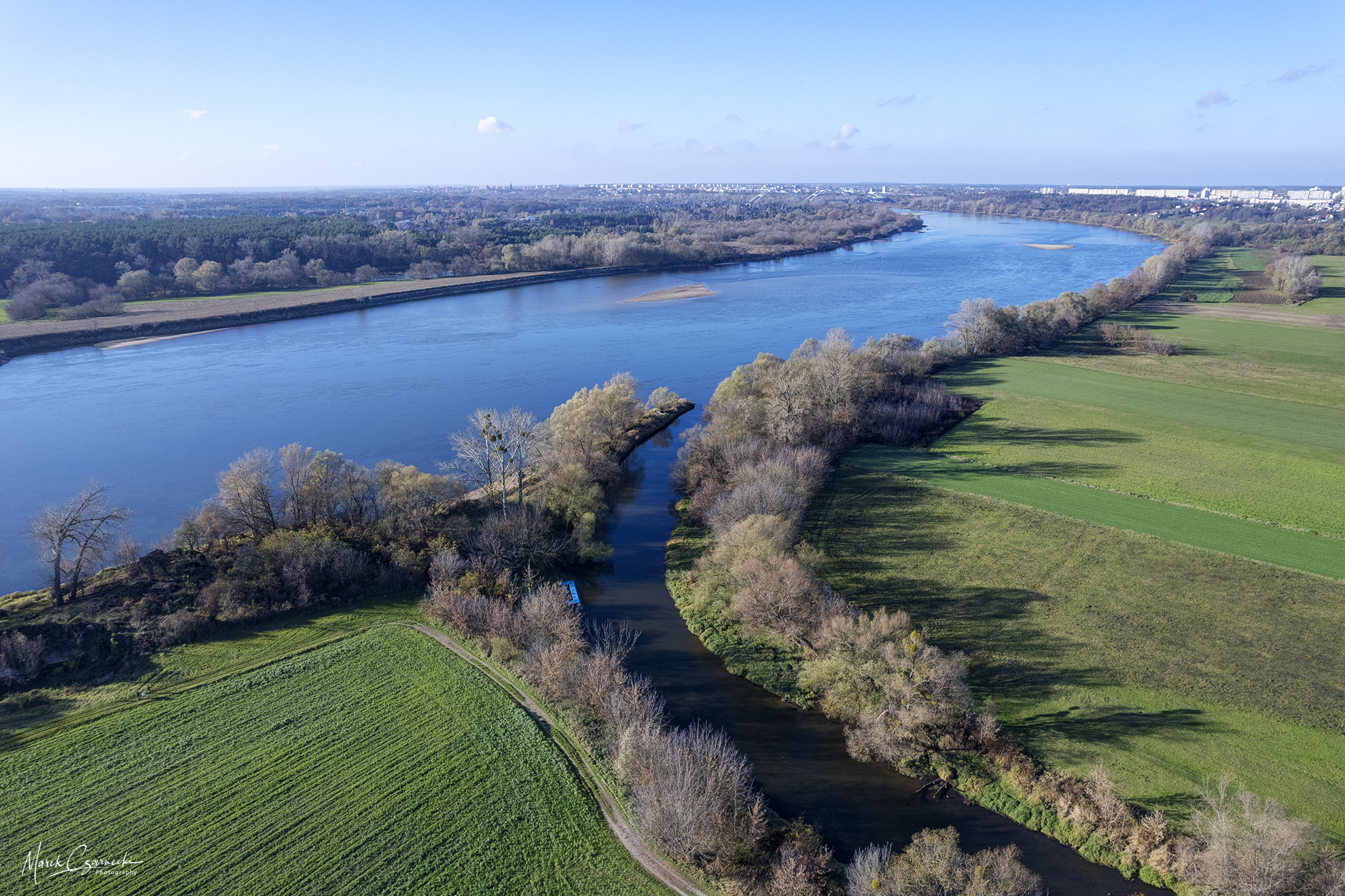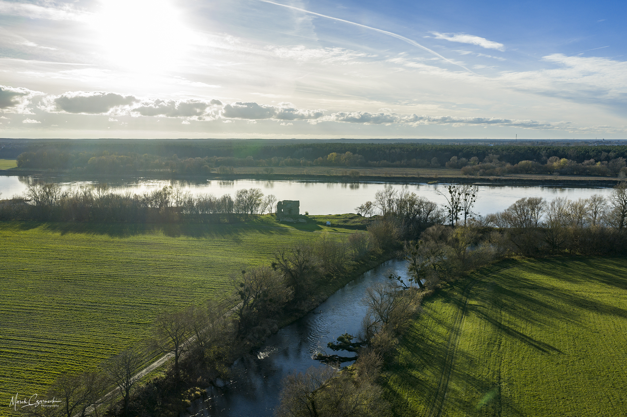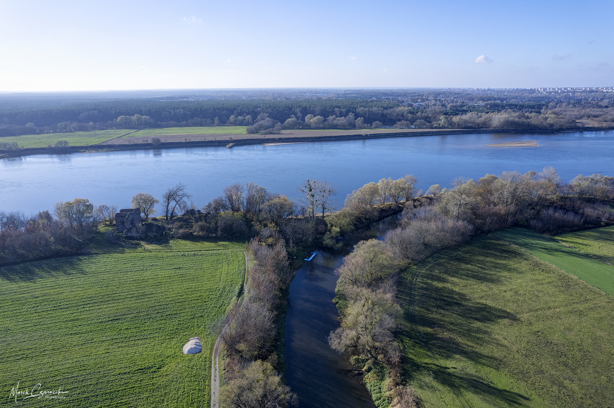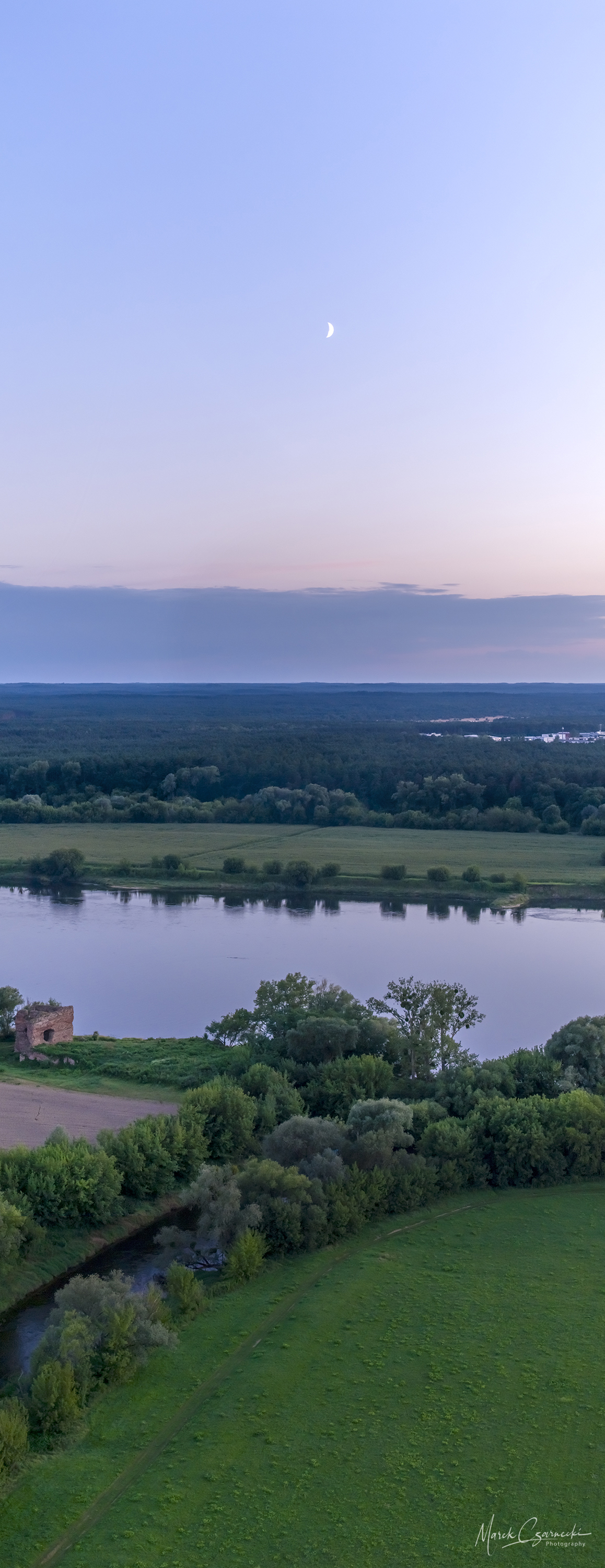 Ta nowa przestrzeń na mojej stronie jest fotograficznym zapisem mojej fascynacji unikatowym miejscem, w którym nurt Drwęcy spotyka się z Wisłą. Wykorzystując perspektywę z drona, staram się uchwycić ten krajobraz w sposób wielowymiarowy – od klasycznych panoram poziomych, przez dynamiczne ujęcia wertykalne, aż po surrealistyczne „małe planety”, które zamykają ten nadwiślański świat w widowiskowej, sferycznej formie.